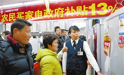 2008年末,财政部、商务部、工业和信息化部联合宣布,从2008年12月1日起将“家电下乡”实施范围扩大到14个省区市,并从今年2月1日起在全国全面推广。据测算,“家电下乡”累计可拉动消费9200亿元。