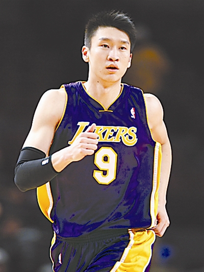 昨日洛杉矶湖人队客场以126比117战胜纽约尼克斯队。中国球员孙悦在终场前不到两分钟时获得出场机会。新华社记者 侯俊 摄
