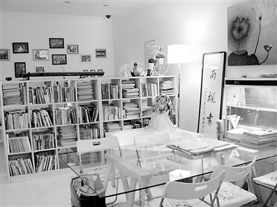 店内的图书多为国内引进的各种绘本,还有100多本店主珍藏的外文原版绘本供读者阅览。店内的读者多是年轻的父母和他们的孩子,围坐在店主准备的小书桌前,看得不亦乐乎。小朋友边看边玩,一会翻翻书,一会又闲不住地摆弄起店内的各种毛绒玩具,他们很多都是这里的常客。一位年轻的妈妈说,她的女儿今年五岁,每礼拜必来墨盒子,有时一泡就是一下午,“因为文字书还看不懂,所以就特别喜欢这些花花绿绿的绘本。”她们有时还来参加这里每周六举办的“童心剧场”,观看店主搜集的经典儿童影片。“墨盒子很宽容,即使小孩把书、玩具弄得很乱,店主也不会介意。”