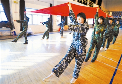 2月5日,护旗手在进行训练。第24届世界大学生冬季运动会开幕式、闭幕式的护旗手近日开始进行紧张的封闭式训练,这70余名护旗手全部是来自东北农业大学的大学生。新华社记者 王建威 摄