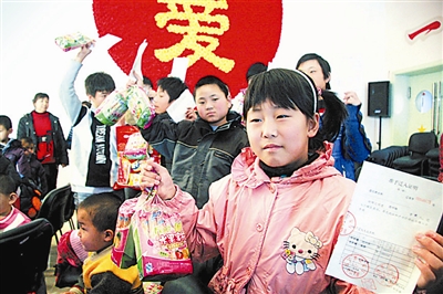2月6日,沈阳市儿童福利院的58名孩子手捧户口落户单及礼物高兴地笑了起来。当天上午,沈阳公安局社区警务支队的民警来到位于沈阳市于洪区造化乡的沈阳市儿童福利院为他们历年接收的58名没有户籍的弃婴办理了落户手续,使这些孩子在新春佳节之际成为了沈阳人,福利院的工作人员高兴地说:“太好了!这些孩子们终于有户口了。” 赵敬东 摄