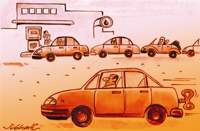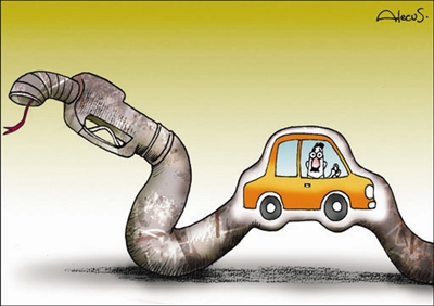 一旦买了汽车,你就身不由己地让加油管给牵制住了。