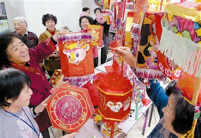 当日,北京市东城区北新桥街道民安社区的居民举办“正月十五社区花灯大比拼”活动。社区居民们利用各种节日礼品包装盒,制作了50余盏元宵花灯,美观又环保。