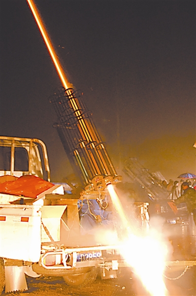 图为2月7日晚在山西临汾拍摄的人工增雨火箭炮发射现场。新华社发(闫锐鹏 摄)