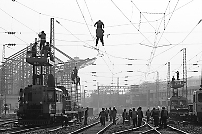 近日,郑州铁路局郑州供电段组织近500名干部职工在郑州火车站西出口进行接触网施工改造。为保证春运旅客列车安全,郑州供电段组织近500名精兵强将和47台专业作业车,对郑州火车站西出口进行电气化施工改造。