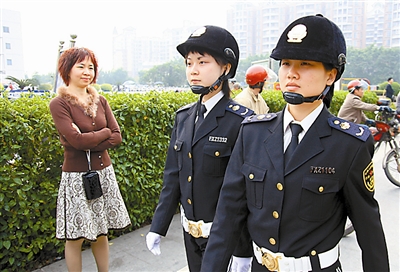 2009年1月20日,佛山首支城管执法女子特勤中队挂牌上路,佛山欲借此提升打造城管品牌形象。 陈志刚 摄