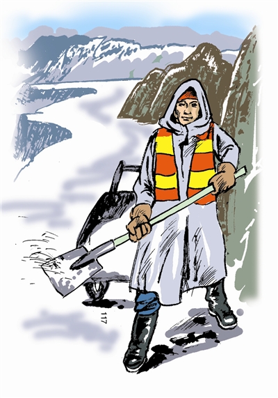雪一直在下,想着十八跳路段地势险峻,又加上春运车流量大,他担心交通会出问题,就一直守在了路上。雪很大,还夹杂着雨,吴国胜一直在铲雪。直到下午,妻子见他没回来吃午饭,担心他出事情,也赶到十八跳。只见他像个雪人似的还在铲着积雪。妻子劝他回家,他反倒往妻子手里塞上一把铁锹,拉着她和自己一起干了起来,一直干到下午5点多钟,清扫出了一条9米宽的无积雪路面,才和妻子一起回家。