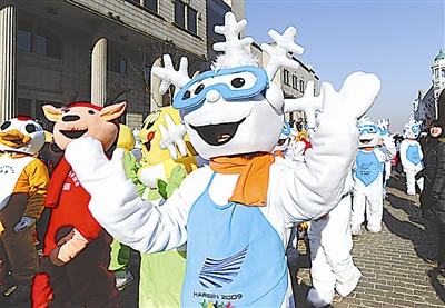 哈尔滨举行大冬会倒计时10天庆祝活动,数百名来自哈尔滨市各界的市民走上街头,庆祝即将到来的世界大冬会和我国传统的元宵佳节。新华社记者 李勇 摄