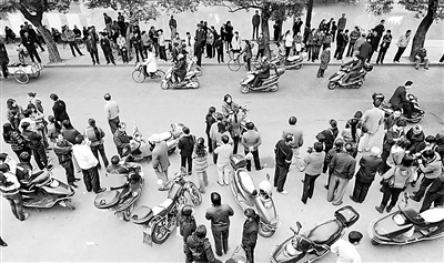 春节过后,大量的农民工来到福州寻找工作,由于对当地情况以及招工信息不了解,许多人一下火车就聚集到火车站附近的路边用工市场寻找工作,门庭若市的路边用工市场与冷冷清清的正规用工市场形成了强烈对比。新华社记者 张国俊 摄