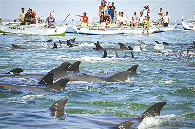 数百海豚搁浅 菲律宾海滩