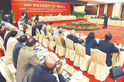 “经济全球化与工会”国际论坛自2004年由中华全国总工会与世界工联、非工统、阿工联等国际和区域工会组织共同发起以来,至今已成功举办了4次论坛。由于论坛讨论的是各国工会和工人普遍关心的问题,在国际工运中产生了积极的影响和很好的效果。此次论坛为期2天,来自26个国家48个工会组织的100多位工会领导人将围绕“科学发展、体面劳动、职工权益”的主题,结合各自国家和工会组织的实际,进行交流和研讨,共商应对金融危机、谋求经济发展和实现工人权益之策。