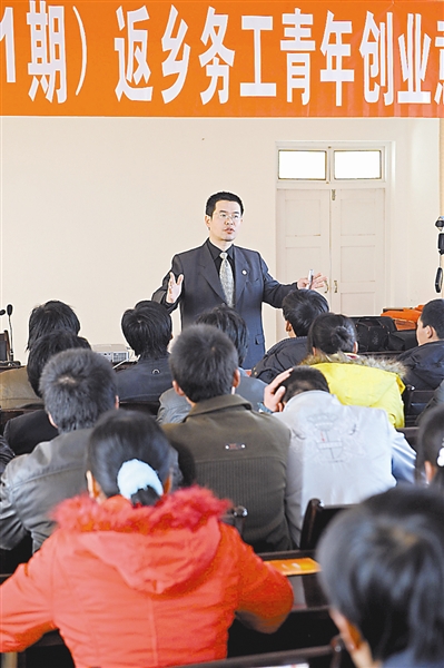宁夏青年就业创业培训中心的老师在宁夏中卫市兴仁镇为青年农民讲课(2月11日摄)。