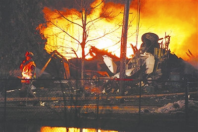 根据美国媒体的报道,飞机坠毁时间为12日晚上10时20分(北京时间13日11时20分)左右。在离飞机预定降落目的地布法罗尼亚加拉国际机场还有5分钟的时候,飞机撞向了布法罗东北郊区的一座房屋,当场燃起熊熊大火,几英里外都能看见冲天的火光。