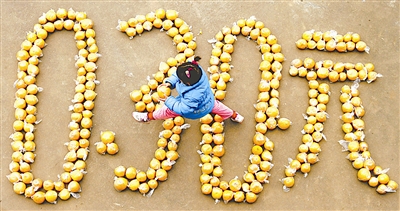2月15日,浙江衢州衢江区横路镇方家基村,孩子们用胡柚摆出每斤的价格,由于没有订货商收购,大量胡柚堆积在农民家中。