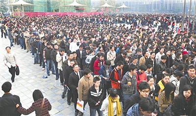 2月14日至15日,春节过后的成都首场大规模招聘会在新会展中心启动,10多万名求职者对23769个岗位展开了“疯抢攻势”,求职人数是人才市场办招聘会16年来最多的一次,专科生需求量首次超过本科生。