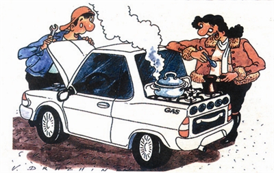 经过改装,汽车实现了多功能,它给旅行者带来方便和乐趣。看来这项“发明”不是臆想,更非幻想,很可能成为生活的现实。