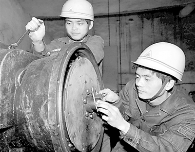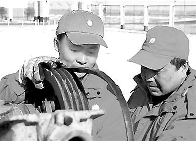“变速箱温度高的病因找到了,是传动轴磨损间隙过大造成的!”2月18日下午,重庆能源干坝子洗选厂装卸车间维修班班长邱政波(右)高兴地喊起来。作为厂里的技改明星,邱政波今年又把第一个技改目标瞄准了推土机变速箱温度高的问题,一有空,他就围着变速箱推敲、排查、分析,每个细节都不放过。这次病因的查明,让邱政波的技改步伐向前迈进一大步。 段果 方向 摄