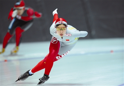 2月21日,中国选手付春艳在比赛中。当日,在第24届世界大学生冬季运动会速度滑冰女子3000米决赛中,中国选手付春艳以4分15秒73的成绩获得冠军。新华社记者 刘大伟 摄