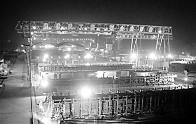 在国家重点工程向莆铁路施工工地,中铁大桥局六公司向莆铁路南昌梁场施工人员昼夜不停施工,赛安全、赛质量、赛进度。面对国家拉动内需,促进经济增长的形势,中铁大桥局六公司抓住国家加快铁路建设发展的难得机遇,今年已承揽30亿元的施工任务,创下历年新高。(周超 摄)