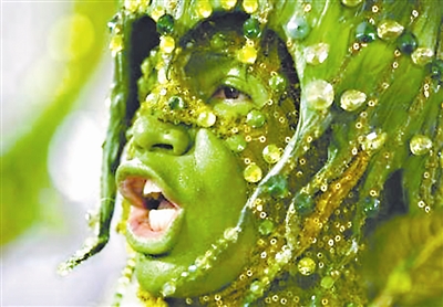 2月24日是世界最富盛名的“里约热内卢狂欢节”第二天,图为化妆十分独特的维拉杜洛桑巴舞学校舞蹈演员在花车游街队伍中表演。阿健 供图