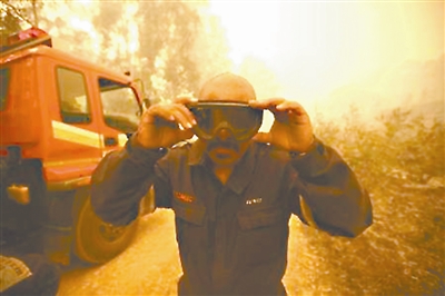 最近几周,强劲的东南风和干燥的天气在南非开普敦省引发多起森林火灾。图为2月23日,带着护目镜的消防员在开普敦西郊树丛的失火现场灭火。肖劼 供图