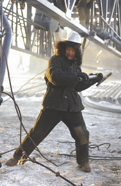 拍摄铁人王进喜跳进泥浆池用身体搅拌泥浆那场戏时,天气预报显示当天大庆的温度接近零下30摄氏度。就这样的天气,还被剧组人员说成是大庆开拍以来难得的好天气。