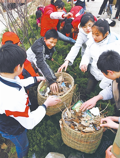当日,江苏省东海县举行万名中小学生志愿者养护绿地活动,以此培养他们“人人为绿色奉献、处处是绿色环境”的环保意识。