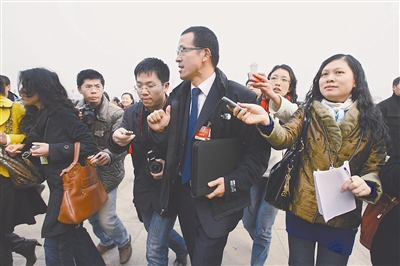 3月3日,俞敏洪委员说:要为大学生提供一个良好的实习机会,只有在学校里把理论和实践紧密结合起来才能在他们毕业后从容地就业。本报记者 杨登峰 摄