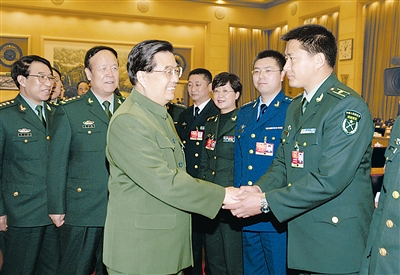 胡锦涛指出,军队要自觉服从服务于党和国家工作大局,积极为促进经济发展、维护社会稳定贡献力量。要在圆满完成以军事斗争准备为龙头的各项任务前提下,积极参加支援国家经济建设和社会事业发展;大力弘扬伟大抗震救灾精神,勇于承担并积极完成抢险救灾等急难险重任务;坚持勤俭建军,勤俭办一切事业。军队要大力发扬拥政爱民的光荣传统,始终与人民群众心连心、同呼吸、共命运。地方各级党委和政府要积极关心、支持国防和军队建设,为国防和军队建设提供强大后盾。