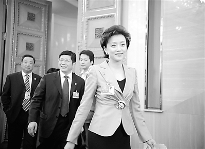 全国政协委员杨澜步入全国政协十一届二次会议记者会会场。 新华社记者 谢环驰 摄
