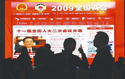 这是3月9日下午,参加政协会议的委员们在参加完政协十一届二次会议第四次全体会议后,在人民大会堂大厅内继续就关心的问题展开讨论,背后的大屏幕即时播放着有关两会的新闻。信息技术的飞速发展,使得新闻传播手段越来越多样、迅捷,一些代表、委员和记者表示,这让自己“压力挺大”——如何让自己的观点能够更好地代表更多的百姓意见,能够对国家的发展更具建设性,如何采访到独家新闻和深度新闻,这是代表、委员和记者共同的课题。很多人表示:本次两会是历届以来最透明、最开放的一届。 本报记者 杨登峰 摄