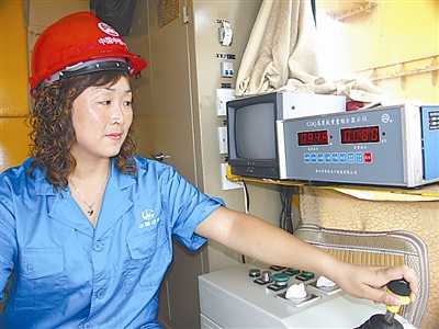 中铁一局五公司重视女职工再上岗工作,通过调整岗位让下岗女工重新上岗。女工席三美下岗多年,家庭生活困难,公司领导亲自过问,经过培训,席三美成为武广客专浏阳河隧道工地的一名提升机司机,并担任了班长职工,经过她的努力,还被评为了了集团公司先进工作者。图为席三美正在进行提升机操作。