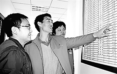 “哈哈,我挣4261元!”“我也不算少,3317元,比上月多400多!”3月10日,工资公布栏前出现笑声、喊声。金融危机影响了企业经营,会不会影响我们收入?重庆能源集团同华煤矿的许多矿工心中嘀咕。这不,公布工资的时间一到,掘进一队的曾伟(左)与工友杨昌祥(中)、刘代荣(右)下班后顾不上吃饭就跑去查看2月份收入。当他们看到自己的工资数额不仅没降反而上升时,脸上的笑容别提多灿烂了。 向良忠 摄