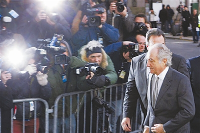 12日上午的开庭聚集了众多媒体的目光,当伯纳德·麦道夫出现在位于纽约曼哈顿下城的法庭门口时,电视台的转播车早已在街边恭候多时,还有直升机在上空不住盘旋,以期获得最好的拍摄角度。人们知道今天的开庭将意味着一个传奇人物时代的结束,而“麦道夫”这个名字似乎也代表了曾经充斥在华尔街的贪婪与欺诈。