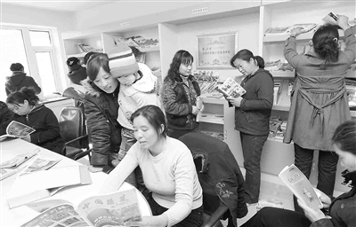锦州市太和区新民乡前山村建立返乡农民工图书阅览室,农民工在这里可以了解就业用工信息,掌握一定的创业知识和技能。图为部分返乡农民工正在阅览室充电。李铁成 侯义宝 摄