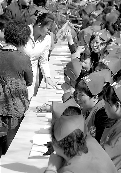 3月18日,河北省邢台市总工会举行2009春季家政双选会,百余名受过专业培训的家政服务人员前来应聘。邢台市总开展的“促就业援助行动”结合市场需求,为下岗失业人员提供免费的家政服务培训,积极打造“牛城大嫂”家政服务品牌。黄涛 摄( 新华社发)