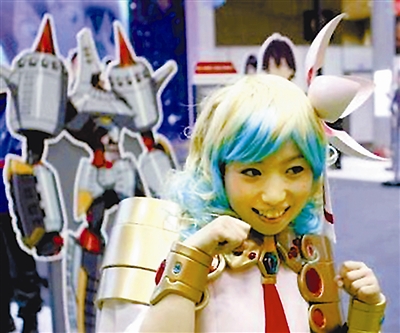 第八届日本东京国际动漫展3月18日如期拉开帷幕,虽说今年参观者不如以往,但参展商仍倾注全部精力吸引顾客。图为一名装扮成动漫人物的模特在表演。阿健 供图