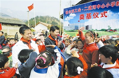这不仅是哈尔滨市各级工会向灾区人民献上的一份爱心,更是哈尔滨市百万职工对灾区群众表达的一个心愿。新建成的小学也将更名为“哈尔滨工会·二道河中心小学”。郭玉军 摄