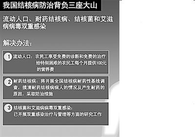 结核病在世界上仍是严重危害人类健康的主要传染病,每年因患肺结核病死亡的人数超过400万,是全球关注的公共卫生和社会问题。在我国,约有活动性肺结核病人450万,每年新发病例145万人,结核病患者数量居世界第二位,80%的病人在农村,75%的病人为中青年。而农民工是结核病的高发群体。据专家介绍,许多农民工进城前已患结核病或感染过结核菌,还有一些来自边远山区的农民工,缺乏对结核菌的特异性免疫力,使他们成为易感人群。