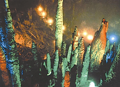 大有“洞中方七日,世上几千年”的感觉。在洞内不仅看到了大量的、各种各样的石钟乳、石笋、石林、石幔、石桥、石潭与石人,同时还看到青黄绿蓝黑白紫等各种颜色的彩色石、彩色水与彩色厅。