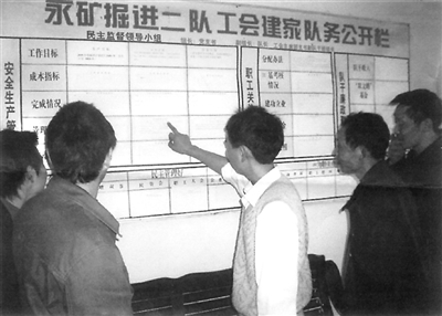 重庆能源集团永川煤矿主动维护返乡农民工切身利益,截至目前,已安置矿区附近200多名返乡农民工。图为农民工到基层队查看工资收入情况。吴明权 摄