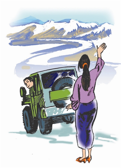 他走了,她趴在阳台上久久凝望着远去的身影……(漫画 法明)