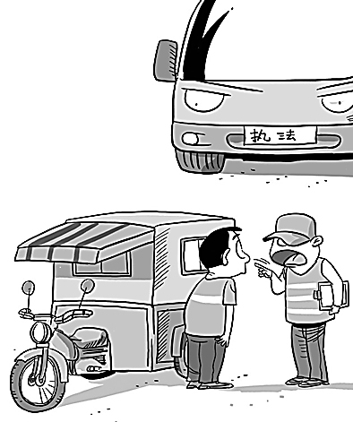 据《华西都市报》报道,近日,四川仁寿县的倪师傅骑着新买的三轮车行驶在城区路上,从一辆没有牌照的警车上下来两个身着交警制服的协警员,一边说“你的车不能进城”,一边开出一张百元罚单。