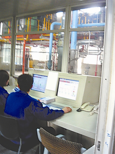 由于严控库存,生产销售快进快出,加上开源节流,杭州油漆有限公司在金融危机的影响下损失较轻。企业在去年给员工增加工资的基础上,今年还准备给员工人均加薪15%。图为该公司树脂车间,职工正在电脑前监控、调节漆料的生产。本报记者 刘津农 摄