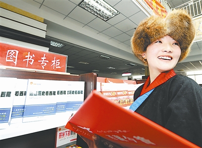 3月25日,藏族姑娘卓玛次仁来到拉萨自治区新华书店阅读有关西藏民主改革的新书。当日,纪念西藏民主改革50年的第一批献礼图书在西藏正式发行上架,8种图书通过珍贵图片、故事、历史和纪实讲述西藏50年来政治、经济、文化、社会等各项事业的巨大变化,揭露达赖集团分裂祖国的事实。新华社记者 觉果 摄