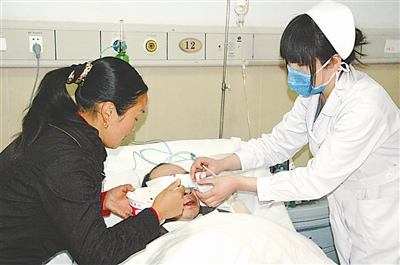 3月25日,五峰县五峰镇楠木村郑晓萍(左)在医院协助医务人员护理她的叔叔。