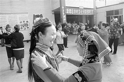 3月24日,成都市新都区斑竹园镇顺江村村民载歌载舞庆祝该村文化大院被授予“三星”。当日,成都市新都区公布对该区70余个文化大院的星级评定结果,17个农村文化大院分别被授予一星到三星不等的星级,根据星级不同将享受不等的政府文化活动补助。