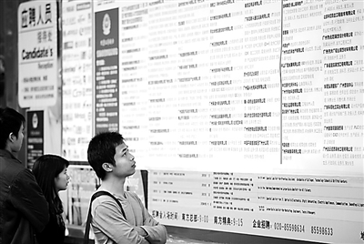 3月26日,求职者在中国南方人才市场南方精典大厦下查看招聘信息。