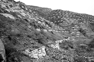 山西省安泽县的一些荒山荒岭上垒建了许多“育林坑”,坑周围的石头上粉刷了白石灰,远远望去漫山遍野、排列整齐的白坑还挺好看的,不由使人产生对未来绿色的遐想。走近观看,“育林坑”里都没有树苗。当地老百姓说,这些“育林坑”修建了好几年啦,每年都花钱雇人用白石灰把褪了色的“育林坑”再粉刷一遍。