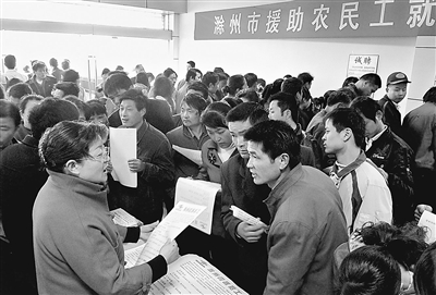 3月31日,安徽滁州市总工会和劳动部门,在该市人力资源市场联合举办专场招聘会,促进返乡农民工就业。当日,招聘活动现场异常火爆,近50家企业提供了1200个岗位,3000名农民工求职,有600人与用人单位当场签订了用工协议。王家国 摄